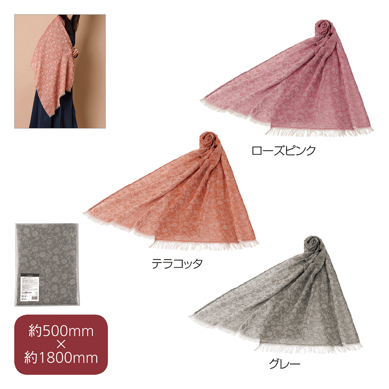 エレガントな柄をジャガード織で表現。シックなくすみカラーが大人の魅力をより引き立てる上品なストール。