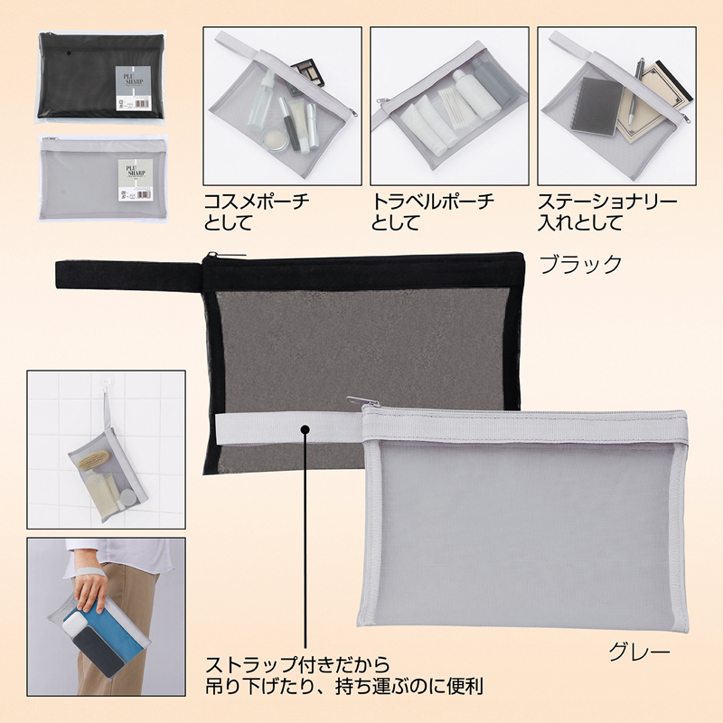 プラシャープ・ストラップ付きメッシュフラットポーチ【色指定可】