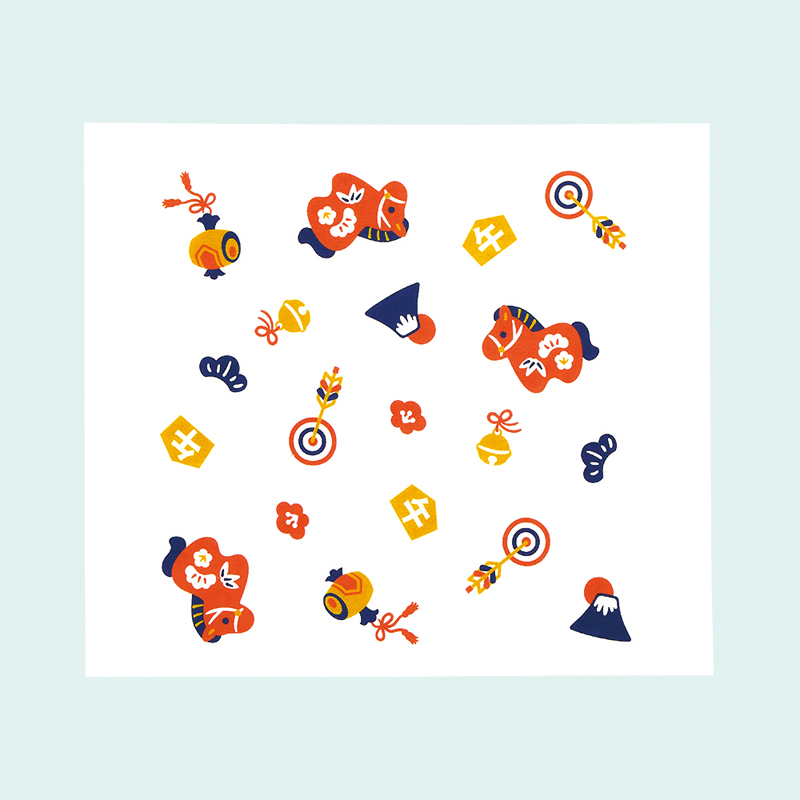 伝統的なモチーフをカジュアルにデザインした、賀春午飾りプリントの貰って嬉しい日本製ふきん。