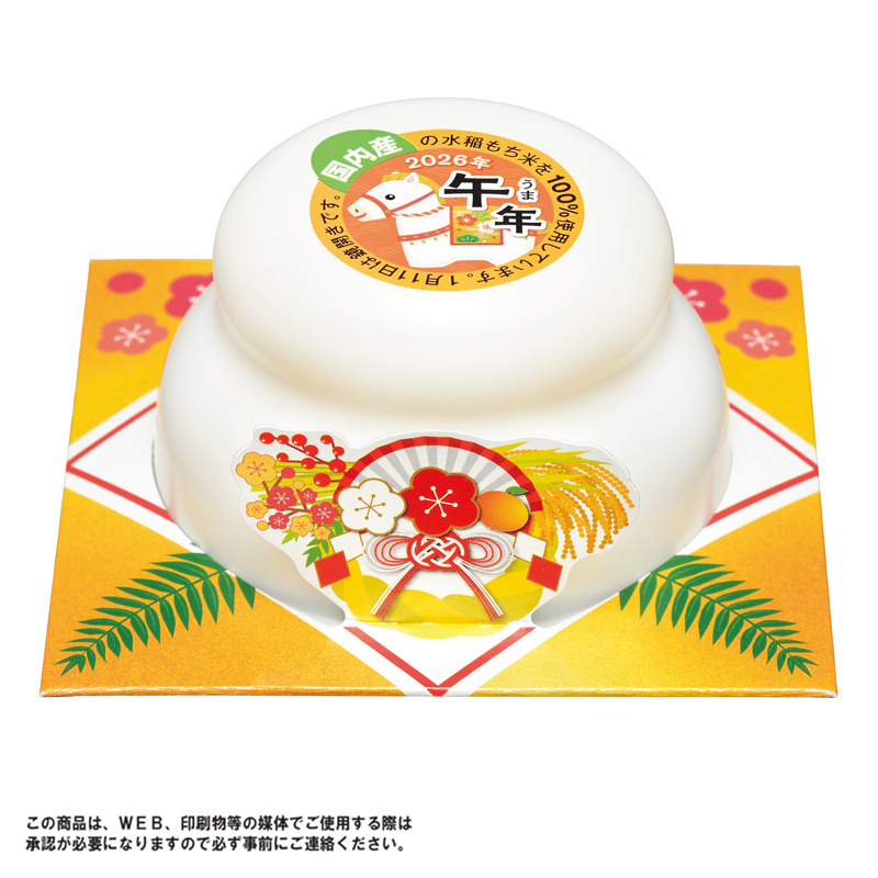 鏡開きで使いやすく、食べやすいまる餅入りタイプのお鏡餅。国内産水稲もち米100%使用。