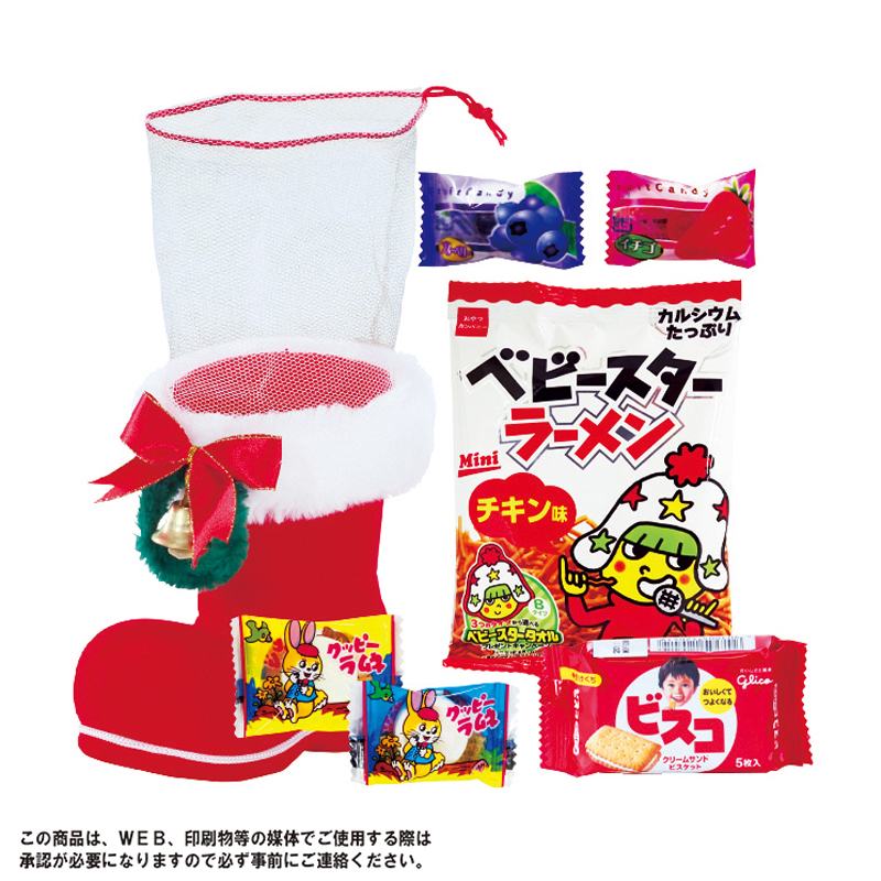 クリスマスの定番!サンタの真っ赤なブーツの中に人気のお菓子が6個入った嬉しいボリュームセット。