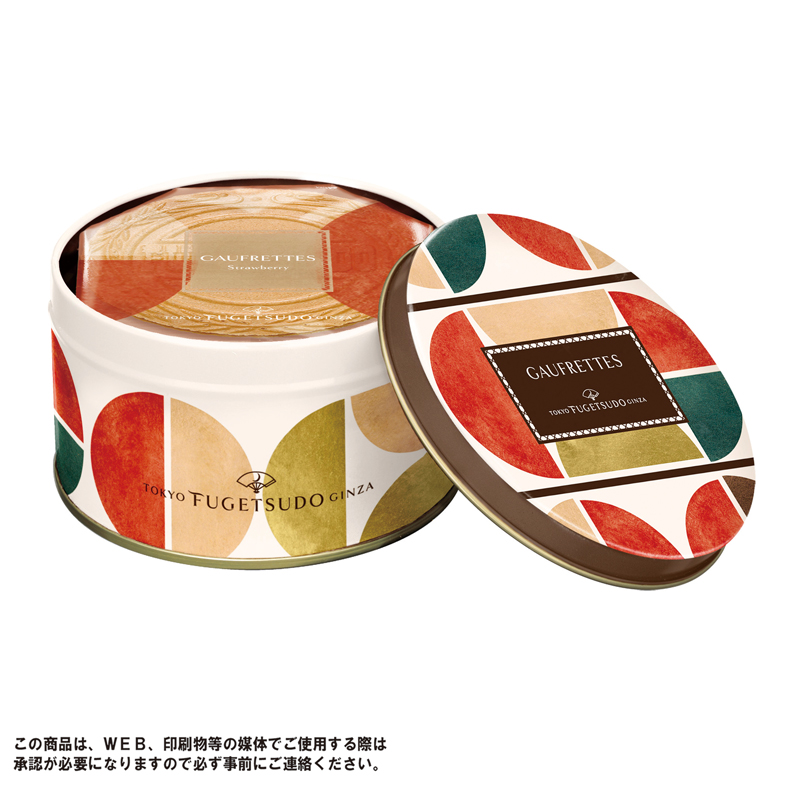 バニラ、ストロベリー、チョコ味のゴーフレット6枚をお洒落なミニ缶に入れた本格スイーツギフト。