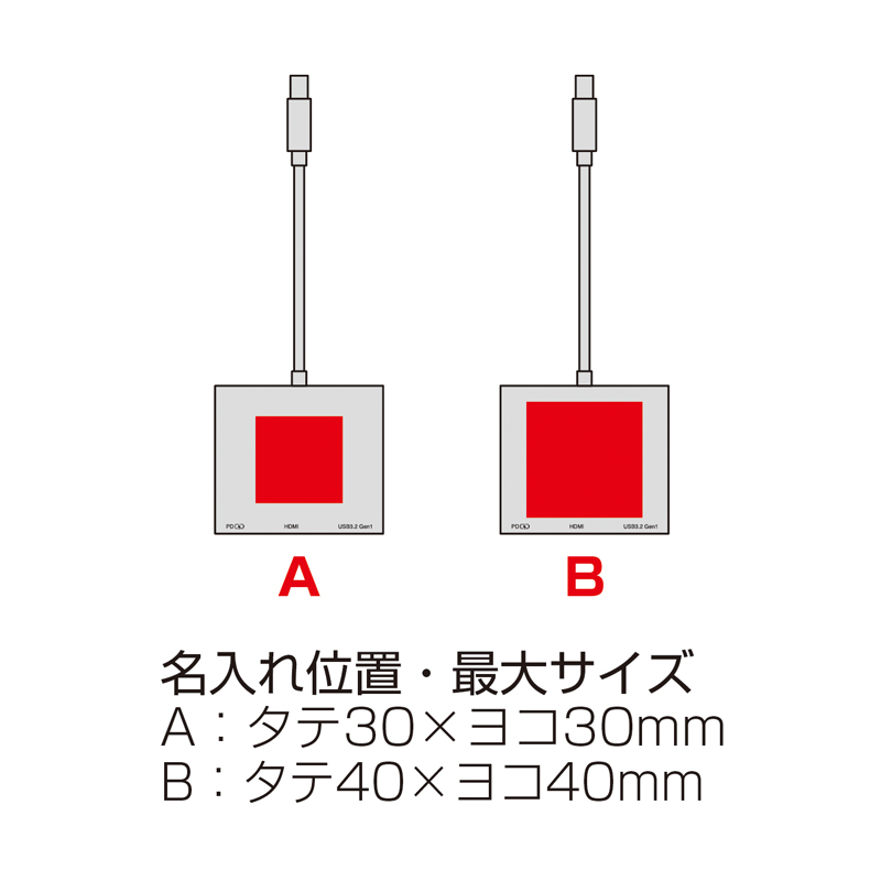 | 名入れ位置・版代 | A:タテ30×ヨコ30mm 版代P・プリント代F B:タテ40×ヨコ40mm フルカラープリント |