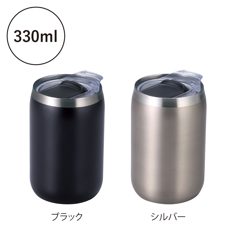 スライド式蓋付き真空二重構造ステンレスタンブラー【色指定可】