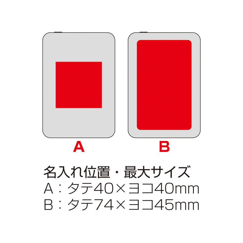 | 名入れ位置・版代 | A:タテ40×ヨコ40mm 版代P・プリント代E B:タテ74×ヨコ45mm フルカラープリント |