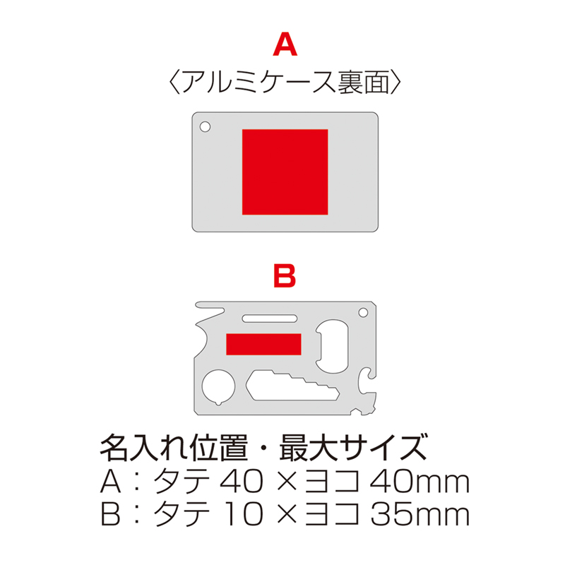 | 名入れ位置・版代 | A:タテ40×ヨコ40mm 版代P・プリント代E B:タテ10×ヨコ35mm 版代P・プリント代D |