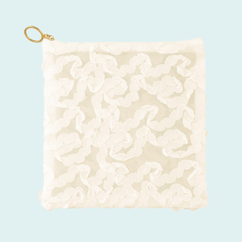 華やかなデザインが印象的。軽やかなメッシュや繊細なディテールなど、細部までこだわった高級感あるポーチです。