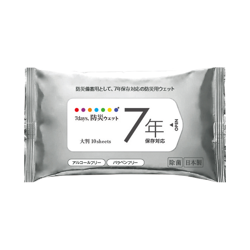 7年保存 防災用大判ウェット10枚(アルコールフリー)