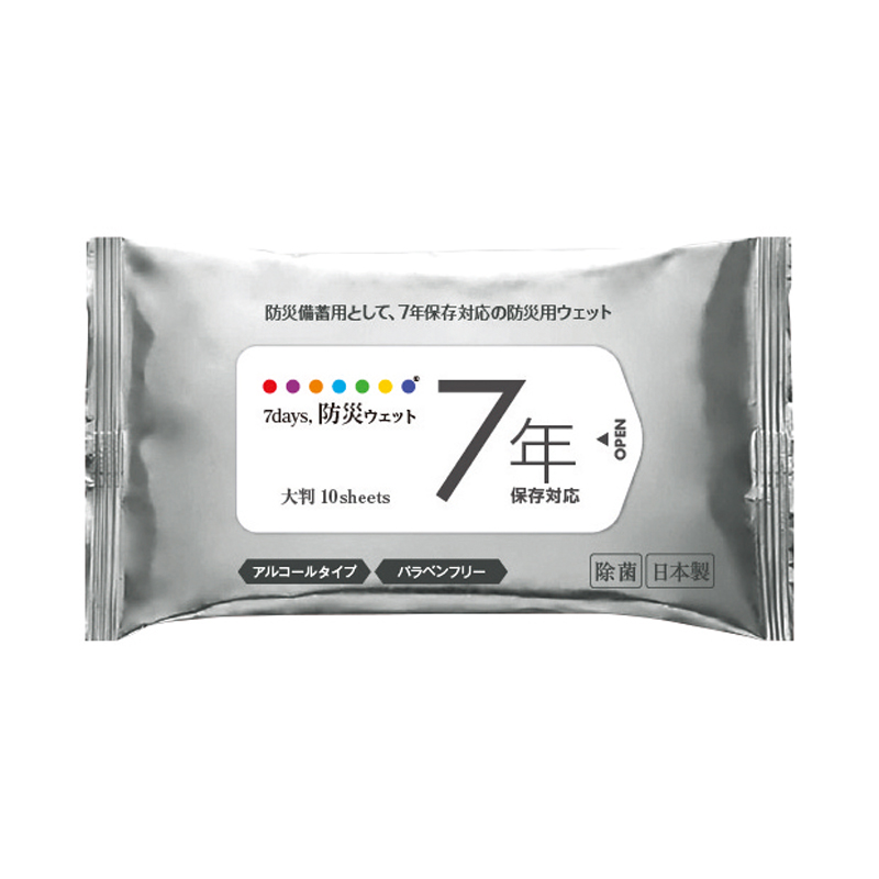 7年保存 防災用大判ウェット10枚(アルコールタイプ)
