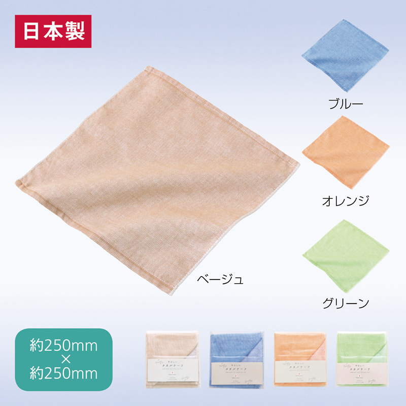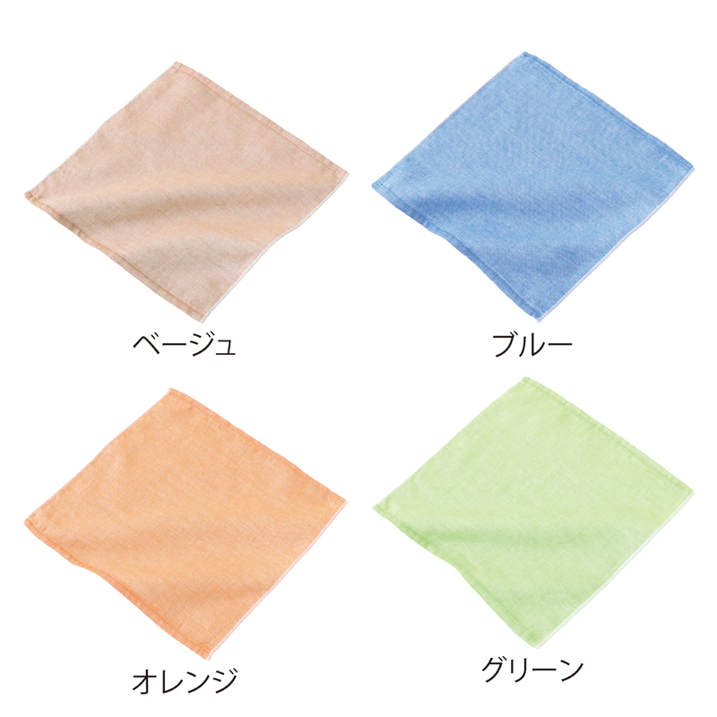 表面がガーゼ、裏面がパイルのタオルチーフ。極細糸で織り上げた、薄さと柔らかな風合いが特徴です。