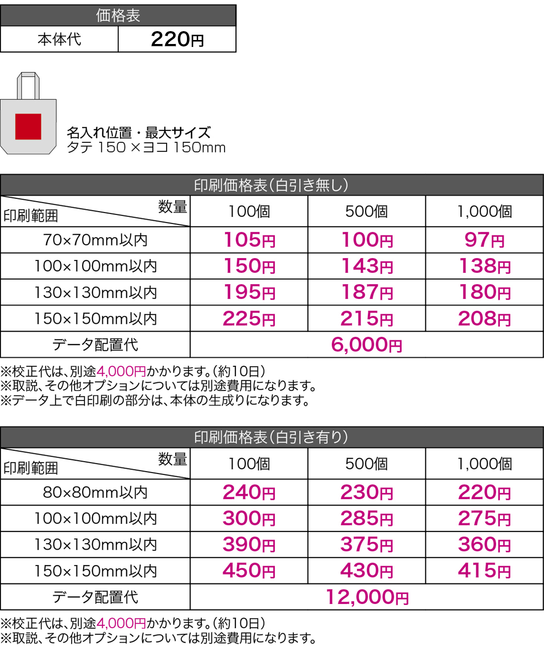| 名入れ位置・版代 | タテ150 ×ヨコ150mm |