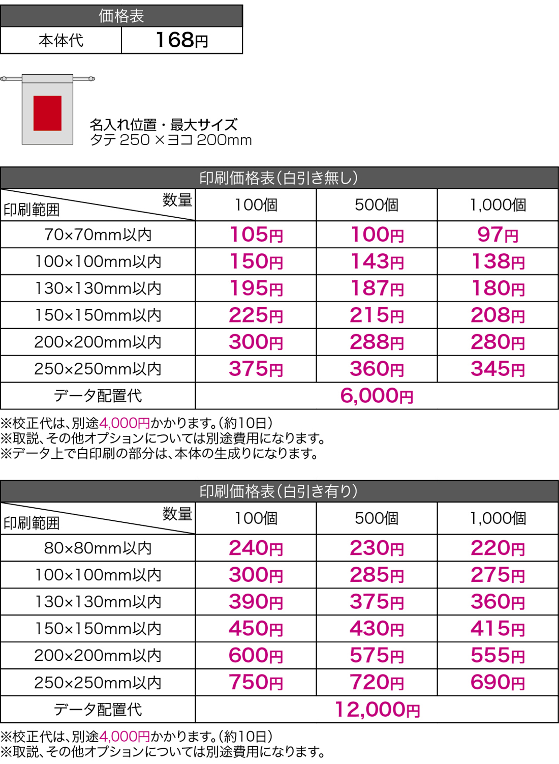 | 名入れ位置・版代 | タテ250×ヨコ200mm |