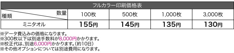 タオルはタテ・ヨコどちらのプリントでも目立ちます。同じデザインで複数の種類を製作してシリーズ化しても。