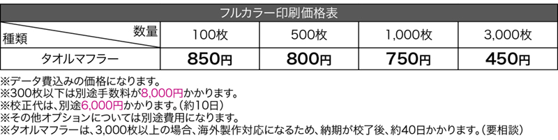 | 名入れ位置・版代 | タテ200 ×ヨコ1000mm フルカラープリント |