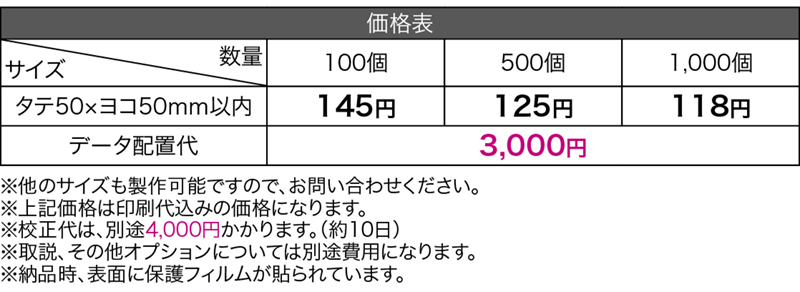 | 名入れ位置・版代 | タテ50×ヨコ50mm以内 |