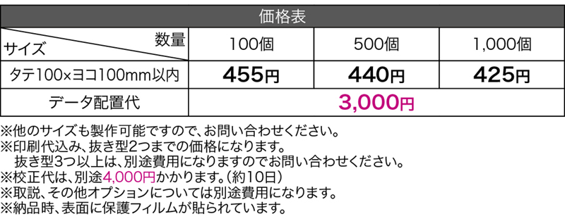 | 名入れ位置・版代 | タテ100×ヨコ100mm以内 |