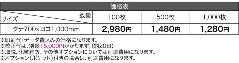 | 名入れ位置・版代 | タテ700×ヨコ1000mm フルカラープリント |