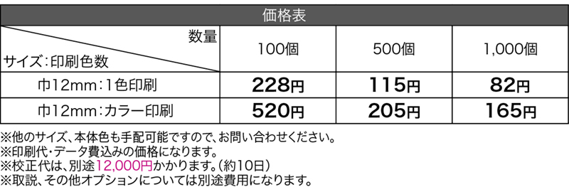 | 名入れ位置・版代 | 全面 1色印刷 カラー印刷 |