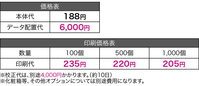 | 備考 | 容量:200ml 納期:校了後約20日 |