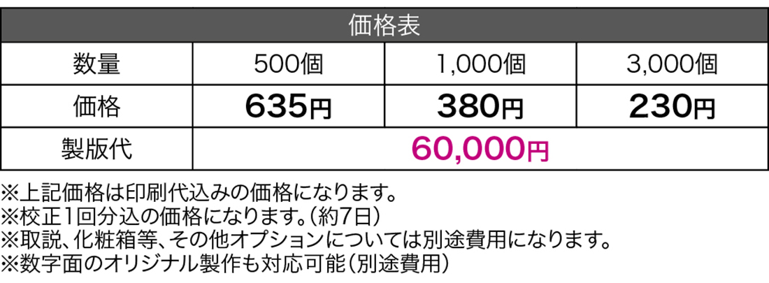 | 名入れ位置・版代 | タテ89×ヨコ58mm |