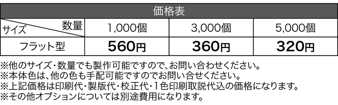 | 名入れ位置・版代 | 全面対応可能 |