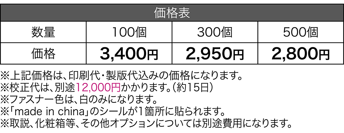 | 名入れ位置・版代 | カバー全面対応可能 フルカラー |