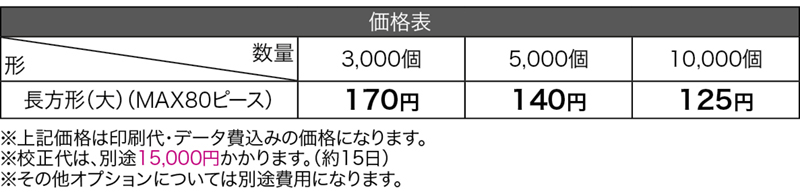 | 備考 | MAX80ピース 納期/校了後約60日 |