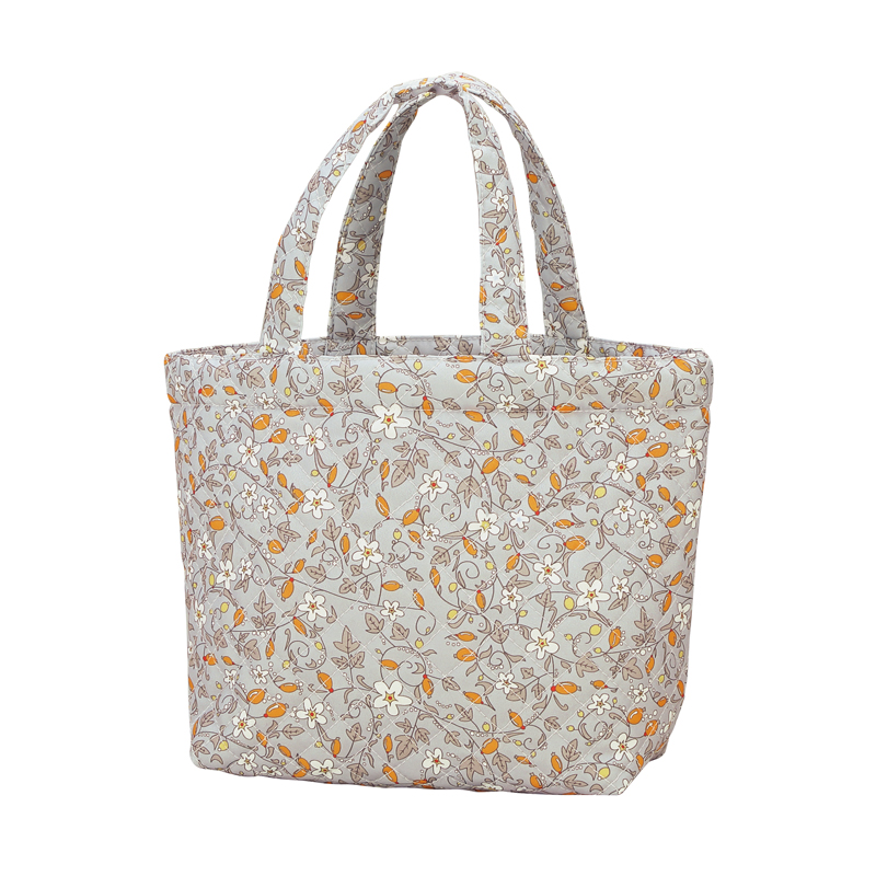 ソフトなキルティング素材が魅力のエレガントな花柄バッグ。お出掛けのサブバッグにもちょうどいいサイズです。