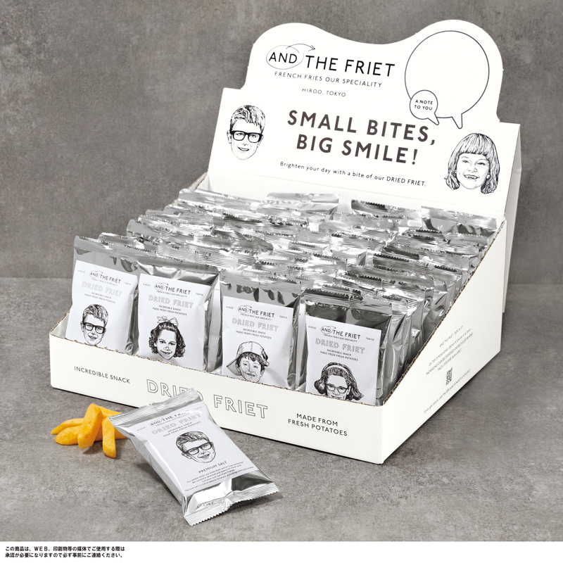 最高のフレンチフライを追求しつづけてきた東京・広尾のフレンチフライ専門店「AND THE FRIET」が数年かけて開発したスナック、DRIED FRIET(ドライフリット)。フレンチフライ専門店で人気のある芋やフレーバーのおいしさをそのまま閉じ込めた、新感覚のプレミアムスナック。