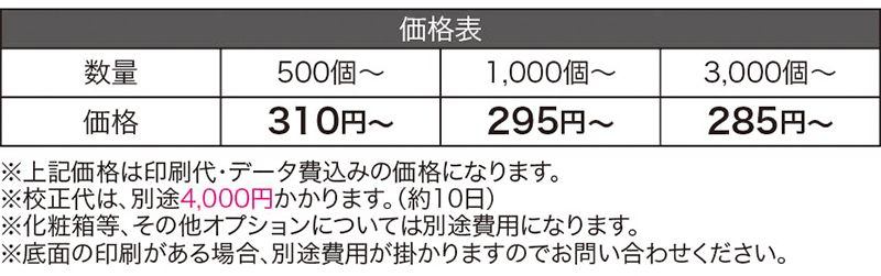 | 備考 | 容量:250ml 納期/校了後約45日 |